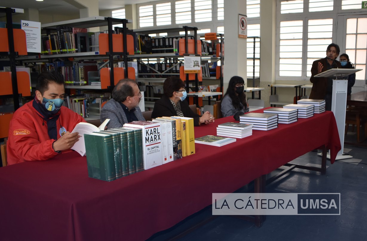 El Doctorado en Planificación Urbana y Región Metropolitana (DOPURMe) de la Facultad de Arquitectura, Artes, Diseño y Urbanismo, de la UMSA realizó el acto de entrega del “Primer Aporte a la Infraestructura Teórica del Posgrado”, con un lote de libros de Filosofía, Sociología, Geografía y Política, entre otros. La actividad se realizó este jueves 16 de diciembre en la Biblioteca de la Facultad.