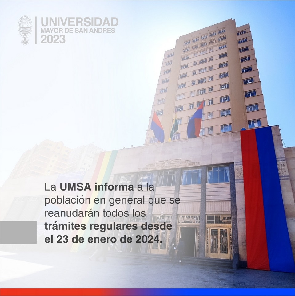 En esta sección encontrarás comunicados informativos de la Universidad Mayor de San Andrés, entre ellos temas; académicos, administración, resoluciones e información de interés para nuestra Comunidad Universitaria.
